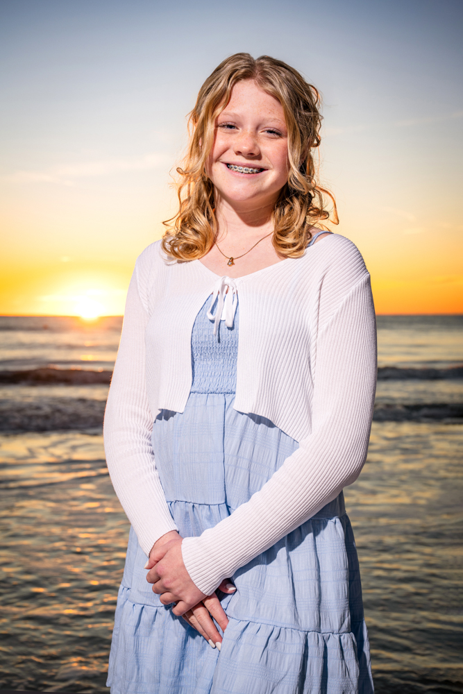 🌅 Stunning Sunset Skies – I specialize in capturing vibrant, true-color skies without overexposing the background. ⚡ Off-Camera Flash (OCF) – I’m often the last photographer on the beach, using professional lighting to bring out both you and the sunset. 📆 Session Timing – Sunset times shift year-round. I’ll schedule your shoot at the perfect moment for golden light. Morning sessions available too! 🖼️ Print-Worthy Quality – Every session delivers high-resolution images ideal for wall art, albums, and sharing online. Distracting Objects and beach goers are removed from your images.